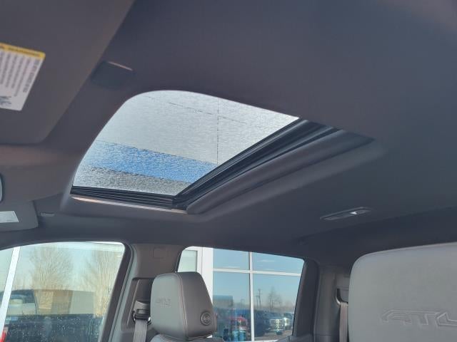 Check out this 2022 GMC Sierra 1500 AT4 offered by Royal Chevrolet GMC EMISSIONS, FEDERAL REQUIREMENTS, ENGINE, 6.2L ECOTEC3 V8, TRANSMISSION, 10-SPEED AUTOMATIC WITH ELECTRONIC PRECISION SHIFT, ELECTRONICALLY CONTROLLED, GVWR, 7000 LBS. (3175 KG), REAR AXLE, 3.23 RATIO, WHEELS, 20" X 9" (50.8 CM X 22.9 CM) MACHINED ALUMINUM, TIRES, 275/60R20SL ALL-TERRAIN, BLACKWALL, TIRE, SPARE 255/80R17SL ALL-SEASON, BLACKWALL, TITANIUM RUSH METALLIC, SEATS, FRONT BUCKET, JET BLACK WITH KALAHARI ACCENTS, PERFORATED LEATHER FRONT SEAT TRIM, AUDIO SYSTEM, 13.4 " DIAGONAL PREMIUM GMC INFOTAINMENT SYSTEM WITH GOOGLE BUILT IN, INCLUDES COLOR TOUCH-SCREEN, MULTI-TOUCH DISPLAY, AM/FM STEREO, AT4 PREMIUM PACKAGE, SIERRA SAFETY PLUS PACKAGE, TECHNOLOGY PACKAGE, AT4 PREFERRED PACKAGE, COOLING, EXTERNAL ENGINE OIL COOLER, COOLING, AUXILIARY EXTERNAL TRANSMISSION OIL COOLER, ALTERNATOR, 170 AMPS, LPO, WHEEL LOCKS, SET OF 4, SUNROOF, POWER, LPO, OFF-ROAD HIGH CLEARANCE STEP, WINDOW, POWER, REAR SLIDING WITH REAR DEFOGGER, LPO, CONSOLE-MOUNTED SAFE, LPO, ALL-WEATHER FLOOR LINERS, 1ST AND 2ND ROWS, MULTICOLOR 15" DIAGONAL HEAD-UP DISPLAY, UNIVERSAL HOME REMOTE, ADAPTIVE CRUISE CONTROL, REAR CAMERA MIRROR, INSIDE REARVIEW AUTO-DIMMING, HD SURROUND VISION, BED VIEW CAMERA, TRAILER CAMERA PROVISIONS AND TRAILER VIEWING SOFTWARE, FRONT AND REAR PARK ASSIST, ULTRASONIC, TRAILER SIDE BLIND ZONE ALERT, REAR CROSS TRAFFIC BRAKING, REAR PEDESTRIAN ALERT, NOT EQUIPPED WITH STEERING COLUMN LOCK, SEE DEALER FOR DETAILS, NOT EQUIPPED WITH DRIVER AND FRONT PASSENGER VENTILATED SEAT CUSHION BLOWER MOTOR, SEE DEALER FOR DETAILS, 3 YEARS OF ONSTAR & CONNECTED SERVICES PLAN AT4 Preferred PackagePower Sliding Rear Window with Rear DefoggerAdaptive Cruise ControlUniversal Home RemoteAT4 Premium Package ($2,390 value)Off-Road High Clearance StepTechnology Package ($1,590 value)Rear Camera MirrorMulticolor 15" Diagonal Head-Up DisplayBed View CameraPreferred Equipment Group 4SBGMC Connected Access CapablePower Front Passenger Windows with Express Up/downPower Rear Windows with Express DownDeep-Tinted GlassPower Door LocksKeyless Open and StartPower Front Windows with Driver Express Up/downRear Wheelhouse LinersColor-Keyed Carpeting Floor CoveringFront Premium Floor Liners with Removable Carpet InsertPush Button StartRemote Vehicle Starter SystemElectric Rear-Window DefoggerFront Rainsensing WipersSpray-On Pickup Bed Liner with AT4 LogoCompassFloor-Mounted Center ConsoleAuto-Locking Rear DifferentialBlack Chrome Header and Grille Insert BarsHill Descent ControlIntegrated Trailer Brake ControllerHeavy-Duty Air FilterWireless ChargingHeated Driver and Front Outboard Passenger SeatingHeated 2nd Row Outboard SeatsHeated Steering Wheel120-Volt Instrument Panel Power OutletVentilated Driver and Front Passenger Seats220 Amp AlternatorElectrical Steering Column LockPower Rake and Telescoping Steering Column2-Speed Transfer CaseSkid PlatesGMC Pro SafetyWireless Phone ProjectionHitch Guidance with Hitch ViewPerimeter LightingSiriusXM with 360L2 Charge/data USB Ports Inside Center Console2 USB Ports2 type-C Charge-Only Rear USB PortsOnStar and GMC Connected Services CapableIn-Vehicle Trailering AppLED Cargo Area LightingRed Recovery HooksSteering Wheel Audio ControlsPremium Bose 7-Speaker Sound SystemTheft Deterrent System (unauthorized Entry)HD Rear Vision CameraWi-Fi Hotspot CapableOff-Road SuspensionTrailering PackageSierra Safety Plus PackageTrailer Camera ProvisionsUltrasonic Front and Rear Park AssistRear Cross Traffic BrakingRear Pedestrian DetectionTrailer Side Blind Zone AlertHD Surround Vision Safety and Security Forward collision mitigation - Forward thinking. You look away for just a second and suddenly the vehicle in front of you has stopped. That's when the forward collision mitigation system comes to life. When it senses an impending impact, it will activate a combination of features to help prevent or reduce the severity of an accident. Forward collision mitigation is alwa